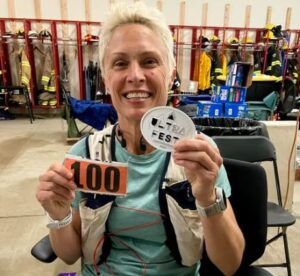 In 2019, she became aware that she had 85 100-mile race finishes and set an ambitious goal to soon reach 100 finishes. Her 100th finish came on February 3, 2021 at Grandmaster Ultras in Arizona, just three weeks before her 60th birthday. Half of her 100 finishes included difficult mountain trail 100s, including 14 Wasatch Front 100 finishes. She is the author of the book, The Extra Mile: One Woman’s Personal Journey to Ultra-Running Greatness